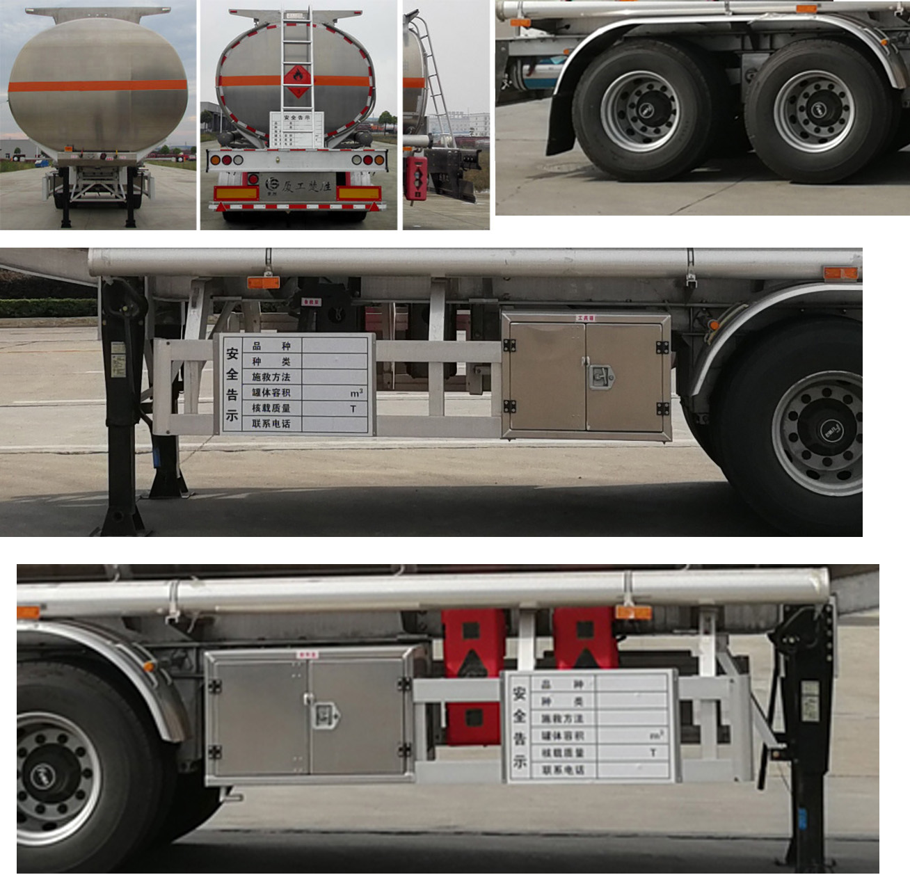 配置  1、該車適用于危險(xiǎn)品運(yùn)輸,運(yùn)送危險(xiǎn)貨物車輛類型為:FL型。類項(xiàng)號(hào):3;運(yùn)輸介質(zhì):汽油,密度:700千克/立方米;罐體有效容積:44.1立方米,罐體外形尺寸(mm):長(zhǎng)×長(zhǎng)軸×短軸為:10600×2495×2150;2、防護(hù)材料均采用鋁合金,螺栓連接;后防護(hù)截面尺寸(寬×高)(mm)60×120,離地高500mm。3、選裝前端無爬梯,選裝后端爬梯結(jié)構(gòu),選裝后端平臺(tái)樣式,選裝接線盒裝車架前端板上,選裝弧形擋泥板,選裝左右兩側(cè)工具箱樣式。ABS生產(chǎn)廠家:威伯科汽車**系統(tǒng)(**)有限公司,廣州市科密汽車制動(dòng)技術(shù)開發(fā)有限公司;型號(hào):4005000810 4S2M;CM2XL-4S/2K。采用適用于牽引危險(xiǎn)品運(yùn)輸半掛車的牽引車。選裝翼板根數(shù)、選裝工具箱鎖扣。