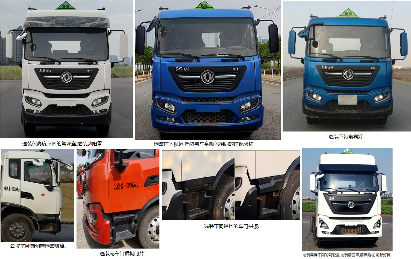 其它:該車適用于危險品運輸,運送危險貨物車輛類型為:FL型。準運介質最大密度:830千克/立方米,罐體總容量26.7立方米,罐體有效容積25.43立方米,罐體外形尺寸(長×寬×高)(mm):9200×2200×1620。側防護材料為鋁合金,螺栓連接;后防護材料為Q235,螺栓連接,截面尺寸(mm)80×140,下邊緣離地高500mm。僅選用排氣管前置、限速裝置(限速80km/h)、前輪盤式制動及子午線輪胎的底盤,轉向輪安裝輪胎爆胎應急防護裝置,后軸采用空氣懸架。安裝帶有衛星定位功能的行駛記錄儀。EBS系統型號/生產企業為:EBS5/東科克諾爾商用車制動系統(十堰)有限公司。發動機/油耗值(L/100km)對應關系為:D6.7NS6B320/37.6。隨底盤選裝駕駛室。選裝ETC。選裝后爬梯樣式。罐體上部選裝上走道,第二軸選裝弧形擋泥板。僅采用軸距1995+4350+1350mm。