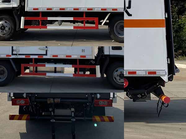 配置  ABS型號:ABS-E,ABS-VI·E;ABS生產(chǎn)企業(yè):威伯科汽車**系統(tǒng)(**)有限公司,廣州瑞立科密汽車電子股份有限公司;安裝有限速裝置;限速裝置限速(km/h):80;安裝有具有衛(wèi)星定位功能的行駛記錄儀;選裝描述:選裝后部無尾板,該車型可選裝ETC車載裝置.運輸具有**包裝的不可燃氣體,安裝2.2類危險品標(biāo)識;發(fā)動機/油耗值(L/100km)對應(yīng)關(guān)系為:F2.8NS6B131/10.85,Q28-130E60/11.02;所用材料材質(zhì)、連接方式以及后部防護裝置的主要尺寸參數(shù)(斷面尺寸和離地高度):側(cè)、后防護材料均為Q235,螺栓連接;后防護截面尺寸100×100mm,下邊緣離地高450mm.選裝后部無尾板,后防護材料為Q235,焊接,截面尺寸100×50mm,下邊緣離地高450mm;尾板、上下坡道(或類似裝置)收起狀態(tài)的水平長度(mm):液壓升降尾板收起狀態(tài)水平長度為280mm,尾板質(zhì)量為350kg;車廂頂部封閉且不可開啟;運輸**容器(瓶)包裝的貨物;危險貨物類項號:2.1,2.2;其他說明:該車為危險貨物運輸車.僅選用排氣管前置,限速裝置,前輪盤式制動及子午線輪胎的底盤.轉(zhuǎn)向輪安裝 輪胎爆胎應(yīng)急防護裝置;廂體側(cè)面選裝開門型式及位置,選裝不帶側(cè)開門,選裝瓦楞板結(jié)構(gòu);廂體側(cè)面板選裝開百葉窗。