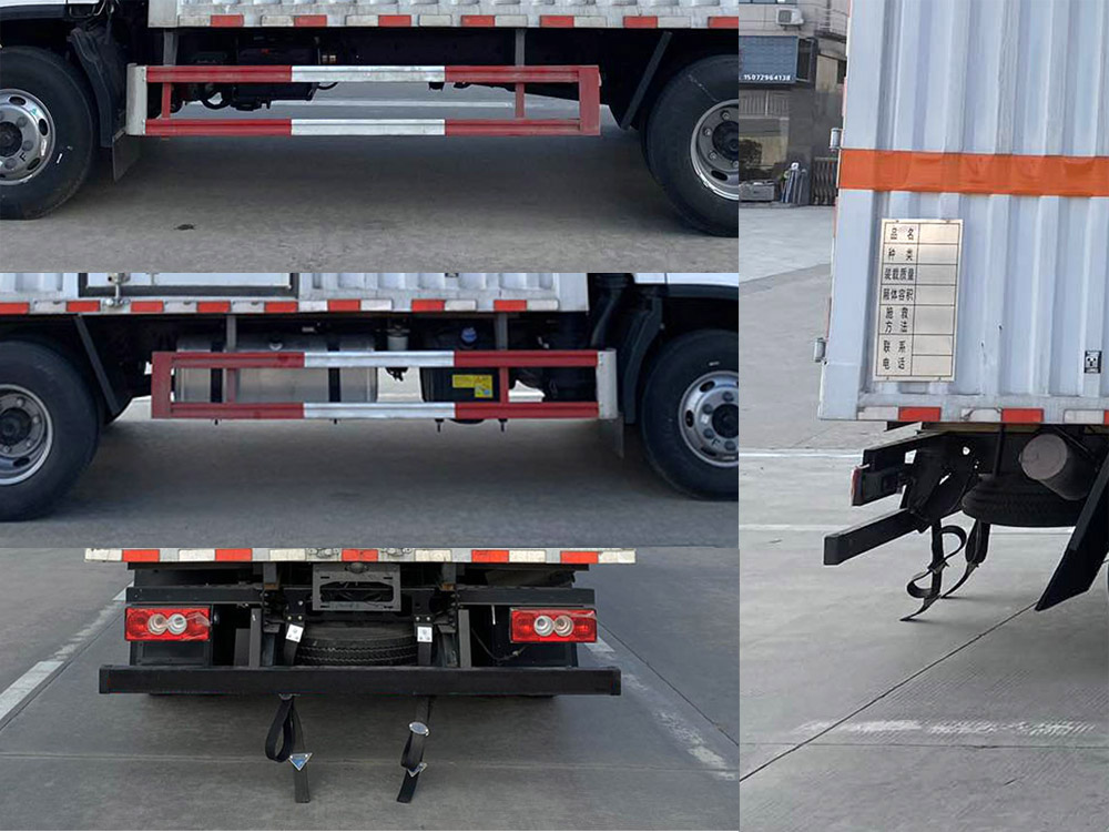 其它:1、該車適用于運輸危險品。廂體頂部封閉不可開啟。運輸具有獨立容器(瓶)包裝的物品,運送危險物品類項號:8。2、側,后防護材料均為Q235,螺栓連接;后防護截面尺寸100×50mm,下邊緣離地高410mm。廂體側面選裝開門型式及位置,選裝不帶側開門,選裝瓦楞板結構;選裝百葉窗。3、隨底盤選裝排半駕駛室,選裝導流罩。僅選用排氣管前置、限速裝置(限速80km/h)、前輪盤式制動及子午線輪胎的底盤;轉向輪裝備輪胎爆胎應急防護裝置。安裝帶衛星定位功能的行駛記錄儀。ABS系統型號:ABS-VI.E;生產企業:廣州瑞立科密汽車電子股份有限公司.ABS系統型號:ABS-E;生產企業:威伯科汽車控制系統(中國)有限公司.ABS系統型號:ABS8.8 ECU 24V,生產企業:東科克諾爾商用車制動系統(十堰)有限公司。發動機/油耗值(L/100km)對應關系為:CY4SK261/16.09,D30TCIF1/16.19,F2.8NS6B156/15.39,F3.8NS6B156/14.90。可選裝ETC車載裝置。