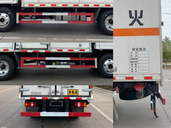 其它 | 1、該車為危險(xiǎn)品運(yùn)輸車.運(yùn)輸具有獨(dú)立容器(瓶)包裝的易燃液體物品.運(yùn)送危險(xiǎn)物品類項(xiàng)號(hào):3類.廂體頂部封閉不可開(kāi)啟.2、側(cè),后防護(hù)材料均為Q235,側(cè)防護(hù)螺栓連接,后防護(hù)焊接,截面尺寸(mm):100×50,下邊緣離地高430mm.3、整備質(zhì)量含備胎,滅火器及隨車工具;貨廂重量為1090kg;材質(zhì)/厚度:復(fù)合板結(jié)構(gòu)廂體:底板材質(zhì)為Q235,厚度3mm,側(cè)板為外Q235+中間阻燃泡沫+內(nèi)純鋁板,厚度42mm;瓦楞板結(jié)構(gòu)廂體:底板材質(zhì)為Q235,厚度3mm,側(cè)板為Q235,厚度1.5mm.4、僅選用排氣管前置、限速裝置(限速80km/h)、前輪盤式制動(dòng)及子午線輪胎的底盤,轉(zhuǎn)向輪安裝輪胎爆胎應(yīng)急防護(hù)裝置,安裝具有衛(wèi)星定位功能的行駛記錄儀.ABS系統(tǒng)控制器型號(hào)/生產(chǎn)企業(yè): APG3550500A/浙江亞太機(jī)電股份有限公司,3550B500/浙江亞太機(jī)電股份有限公司,VIE ABS-II/浙江萬(wàn)安科技股份有限公司.發(fā)動(dòng)機(jī)/油耗值(L/100km)對(duì)應(yīng)關(guān)系為:JX493ZLQ6D/10.75,JX4D25A6H/10.83.隨底盤選裝駕駛室,選裝白色中網(wǎng),選裝白色前保,選裝黑色前保,選裝廂體側(cè)面選裝開(kāi)門型式及位置,選裝不帶側(cè)開(kāi)門,選裝貨廂平面或瓦楞結(jié)構(gòu);廂體側(cè)面選裝開(kāi)百葉窗,選裝后部樣式,該車可選裝直接供電式ETC車載裝置. | ||