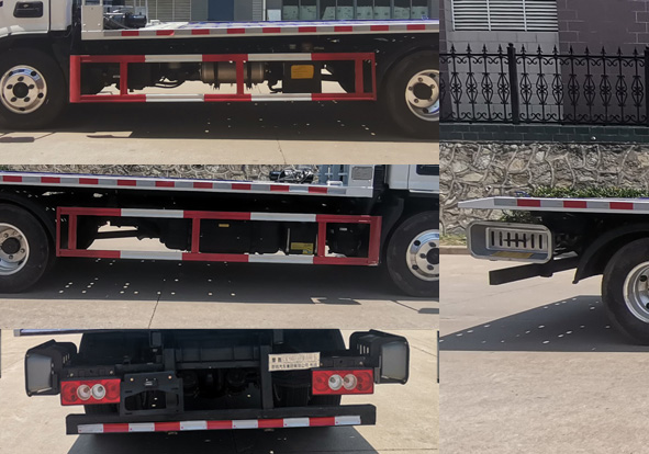 其它:該車主要用于道路清障,主要專用裝置為平板、絞盤、鋼絲繩、油缸.該車無托牽功能.側(cè)防護材料為Q235,螺栓連接;后防護材料為Q235,焊接連接;后防護截面尺寸(mm):100×50,下邊緣離地高420mm.ABS系統(tǒng)型號:ABS-E;生產(chǎn)企業(yè):威伯科汽車控制系統(tǒng)(中國)有限公司.ABS系統(tǒng)型號:ABS-VI.E;生產(chǎn)企業(yè):廣州瑞立科密汽車電子股份有限公司.該車整備質(zhì)量對應(yīng)的配件包括隨車工具、三角墊木,不含備胎和滅火器.僅采用底盤3360mm和3600mm軸距改裝.