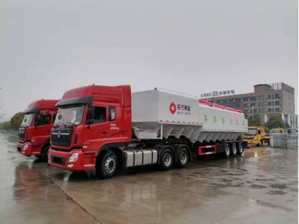 其他頂部有飼料進(jìn)料口;運輸介質(zhì):膨化顆料飼料;ABS:型號:CM2XL-4S/2M;生產(chǎn)廠家:廣州瑞立科密汽車電子股份有限公司;側(cè)防護(hù)和后防護(hù)材質(zhì)均為Q235,連接方式均為焊接連接,后下部防護(hù)裝置截面尺寸(寬×高):140×60mm,離地高度480mm.該車裝備電機(jī),絞龍輸送裝置,散裝飼料罐等專用裝置,主要用于飼料裝卸和運輸,卸料方式:電動絞龍螺旋輸送卸料。選裝后部樣式。