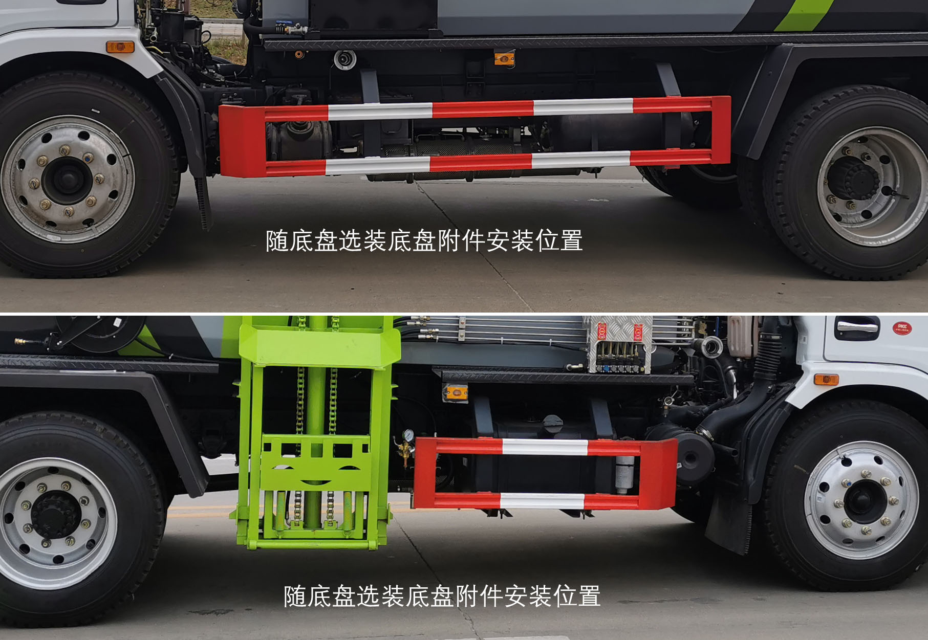 配置  1、該車用于餐廚垃圾收集清運,主要專用裝置為箱體、上料機構提升架、推鏟、**排放裝置。2、側防護采用冷彎型鋼/Q235,螺栓連接;后防護由專用裝置代替,下邊緣離地高:500mm。后部選裝無螺旋卸料裝置,選裝導流裝置。僅選用3800mm軸距。3、隨底盤選裝前面罩,前保險杠,前組合燈具,前霧燈,排半駕駛室,選裝左右油箱位置。隨底盤配置選裝底盤附件安裝位置。ABS型號/廠家:ABS/ASR-12V-4S/4M/襄陽東風隆誠機械有限責任公司。