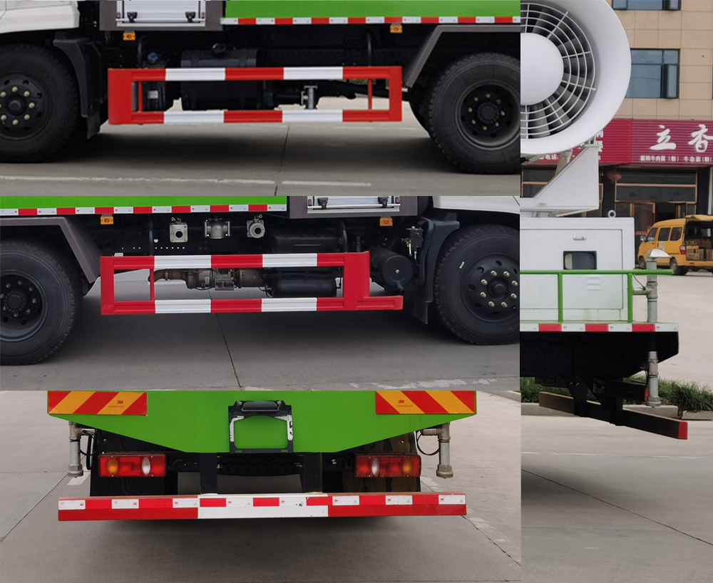 配置  1、該車主要用于城市街道的噴霧抑塵,主要專用裝置為噴霧總成。罐體有效容積:7.35立方米,罐體外形尺寸(長(zhǎng)×寬×高)(mm): 2850×2500×1500。2、側(cè)、后防護(hù)材料均為Q235,螺栓連接,后防護(hù)截面尺寸(mm)120×60,下邊緣離地高450mm。3、僅選用3950mm軸距。隨底盤選裝駕駛室。ABS型號(hào)/生產(chǎn)廠家:3631010-C2000/東科克諾爾商用車制動(dòng)系統(tǒng)(十堰)有限公司,ABS 8/東科克諾爾商用車制動(dòng)系統(tǒng)(十堰)有限公司,4460046450/威伯科汽車**系統(tǒng)(**)有限公司。