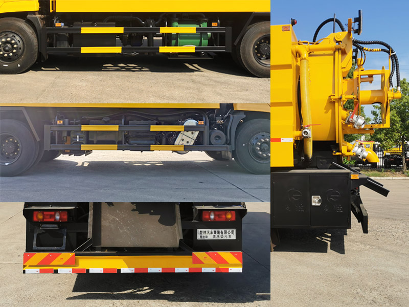 其它:該車主要用于下水道清洗及吸污,主要專用裝置為罐體、吸污泵、清洗沖刷裝置.圓形罐體外形尺寸:罐體總長度5200mm,其中直段長×直徑(mm):4900×1650;罐體前段為清水罐(總長1400mm,其中直段長1100mm),后段為污水罐(總長3800mm).圓形罐體兩側(cè)各有一個異型罐,左右對稱,均為清水罐,單側(cè)異型罐罐體截面為圓弧及多邊形組成,單側(cè)異型罐外形尺寸(長×最大截面寬×最大截面高)為:3500mm×640mm×1100mm.清水罐和吸污罐為兩個獨立罐體,清洗功能時用清水罐,吸污功能時用吸污罐,兩個罐體不能同時滿載,兩種功能不能同時使用.清水罐總?cè)萘?.09立方米,有效容積5.8立方米,污水罐總?cè)萘?.61立方米,有效容積7.25立方米,側(cè)、后防護(hù)材料均為Q235,側(cè)防護(hù)螺栓連接,后防護(hù)焊接,截面尺寸(mm)220×50,下邊緣離地高420mm.僅選用底盤4700mm軸距改裝.隨底盤選裝限速裝置,限速89km/h.ABS型號/廠家:3631010-C2000/東科克諾爾商用車制動系統(tǒng)(十堰)有限公司,ABS 8/東科克諾爾商用車制動系統(tǒng)(十堰)有限公司, 4460046450/威伯科汽車控制系統(tǒng)(中國)有限公司,J ABS/焦作博瑞克控制技術(shù)有限公司.隨底盤選裝駕駛室.