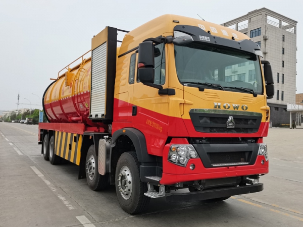 其它:該車用于下水道疏通清洗及吸污并具有舉升功能,主要專用裝置罐體和清洗吸污裝置.罐體外形尺寸:罐體總長度7800mm,其中直段長×直徑(mm):7100×2300,其中罐體前段為清水罐(直段長3140mm);后段為污水罐(直段長3960mm).清水罐和吸污罐為兩個獨立罐體,兩罐不能同時滿載.清水罐罐體總容量11.6立方米,有效容積11.05立方米,污水罐罐體總容量14.5立方米,有效容積13.81立方米.介質:液態污物,密度:800千克/立方米.側、后防護材料均采用Q235,焊接,后防護截面尺寸(mm):120×60,下邊緣離地高500mm.僅選用軸距(mm)1950+4625+1350.ABS生產企業/型號:威伯科(上海)管理有限公司/4460046300.選裝駕駛室.可不選裝遮陽罩,可不選裝玻璃后風窗,選裝鋁合金輪轂.可不選裝駕駛室頂部天線.選裝限速裝置,最高車速(km/h)為80或89.車輛后部箭頭指示燈為作業燈,僅用于作業狀態下使用,車輛行駛過程中關閉.