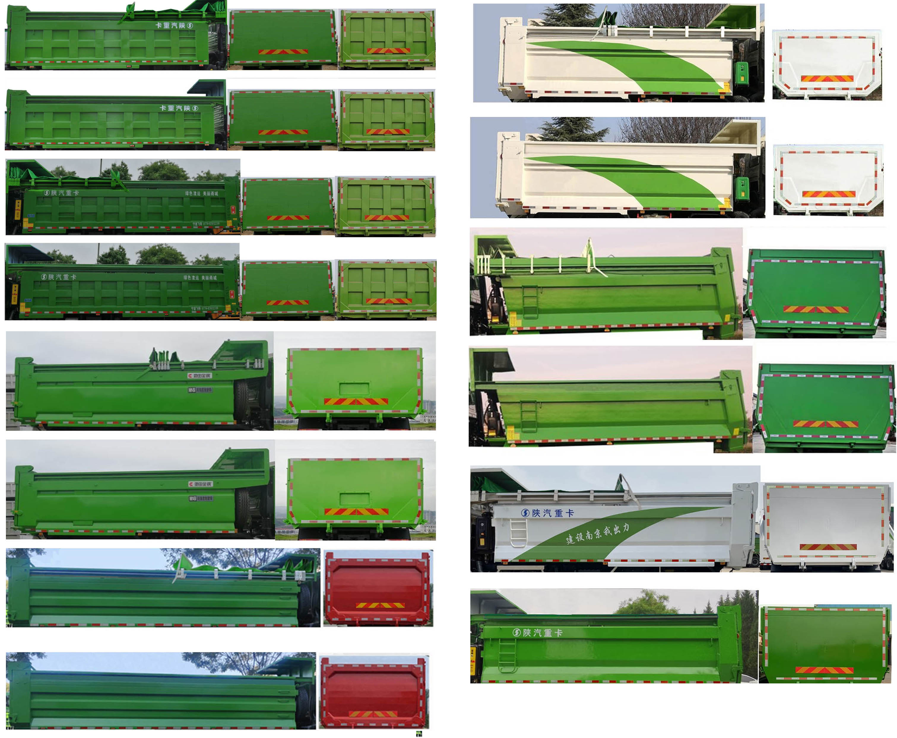 配置  1.在軸距為3975+1400底盤上改裝.整車長度/貨箱/后懸對應關系為:8550/5600/1650,8750/5800/1850;2.隨底盤選裝同系列駕駛室,LED顯示屏,前后組合燈具.3,該車自卸方向為后翻.4,選裝貨箱欄板外觀,環保折疊篷布.環保蓋.5.側后防護所用材料:Q235;連接方式:螺栓連接;后防護斷面寬度(mm):50×120;后防護離地高度(mm):440.4,安裝帶衛星定位功能的行駛記錄儀.6,ABS系統生產廠家及型號分別為:西安正昌電子股份有限公司(型號:ZQFB-V).7,裝WP12.400E62、WP12.430E62、WP12.460E62、X12NS6B360、X12NS6B385、X12NS6B400、X12NS6B430、X12NS6B440、X12NS6B460、X12NS6B470、X12NS6B490發動機時油耗申報值均為37.4L/100km.8,選裝進氣扁管位置,選裝保險杠.