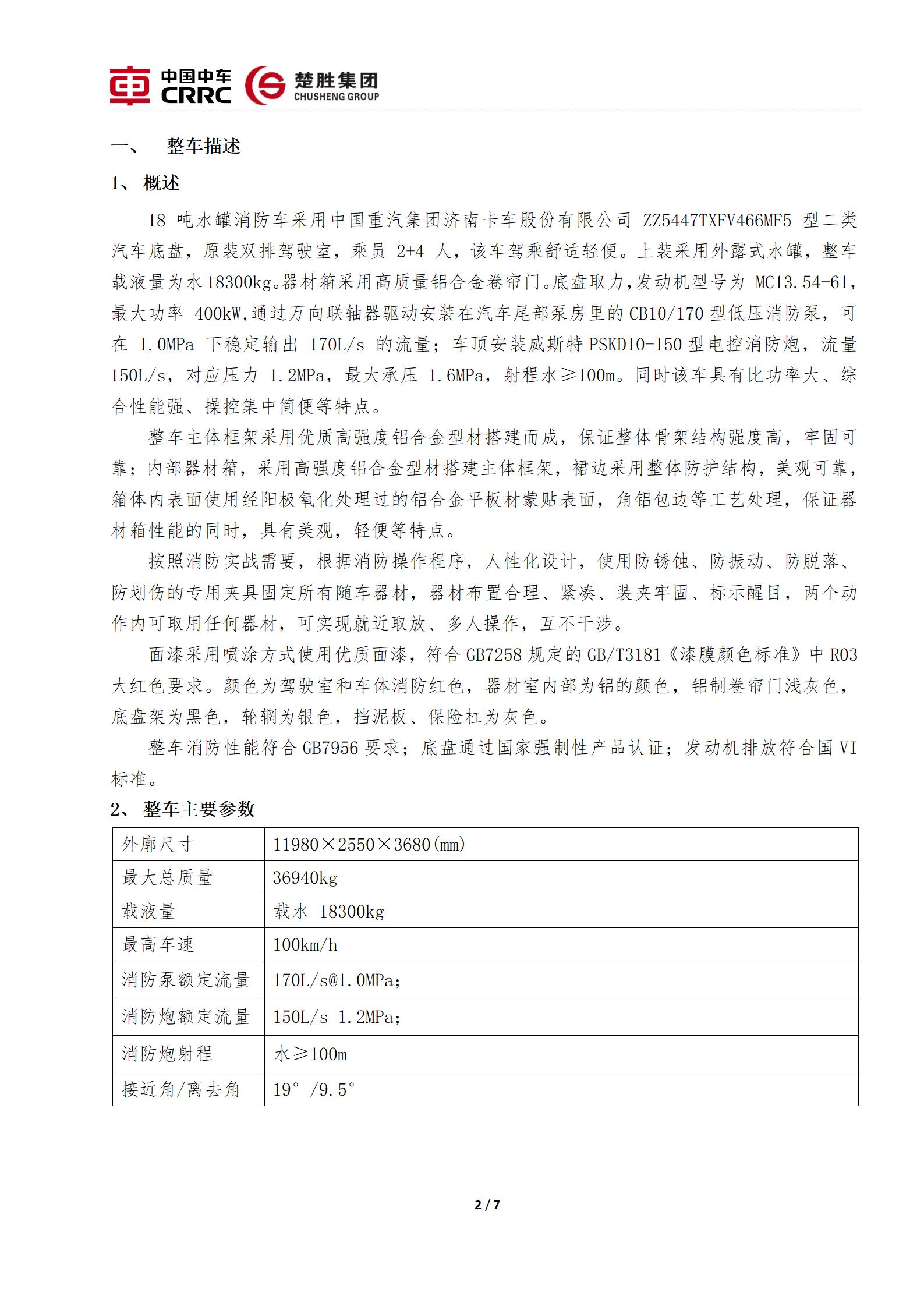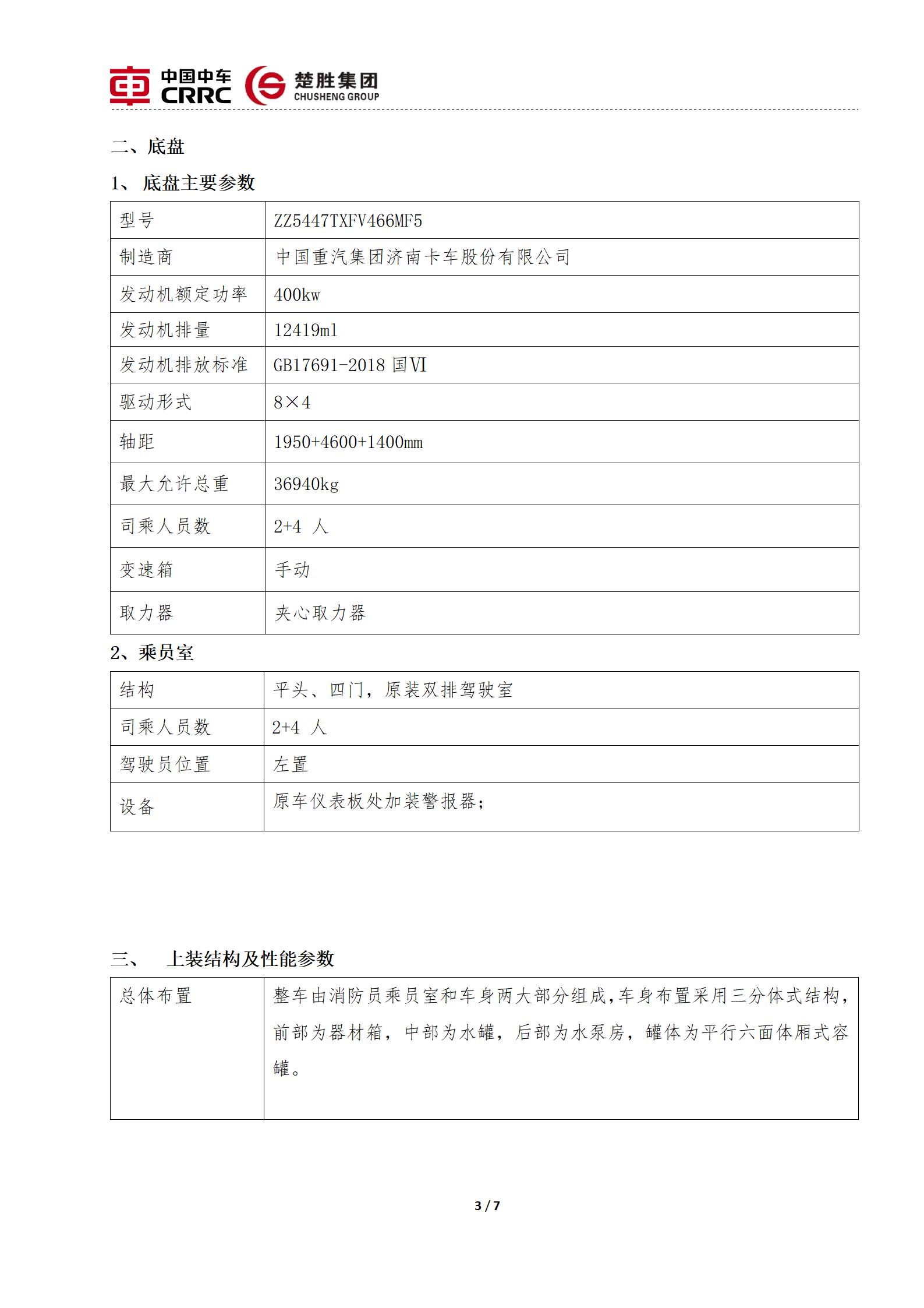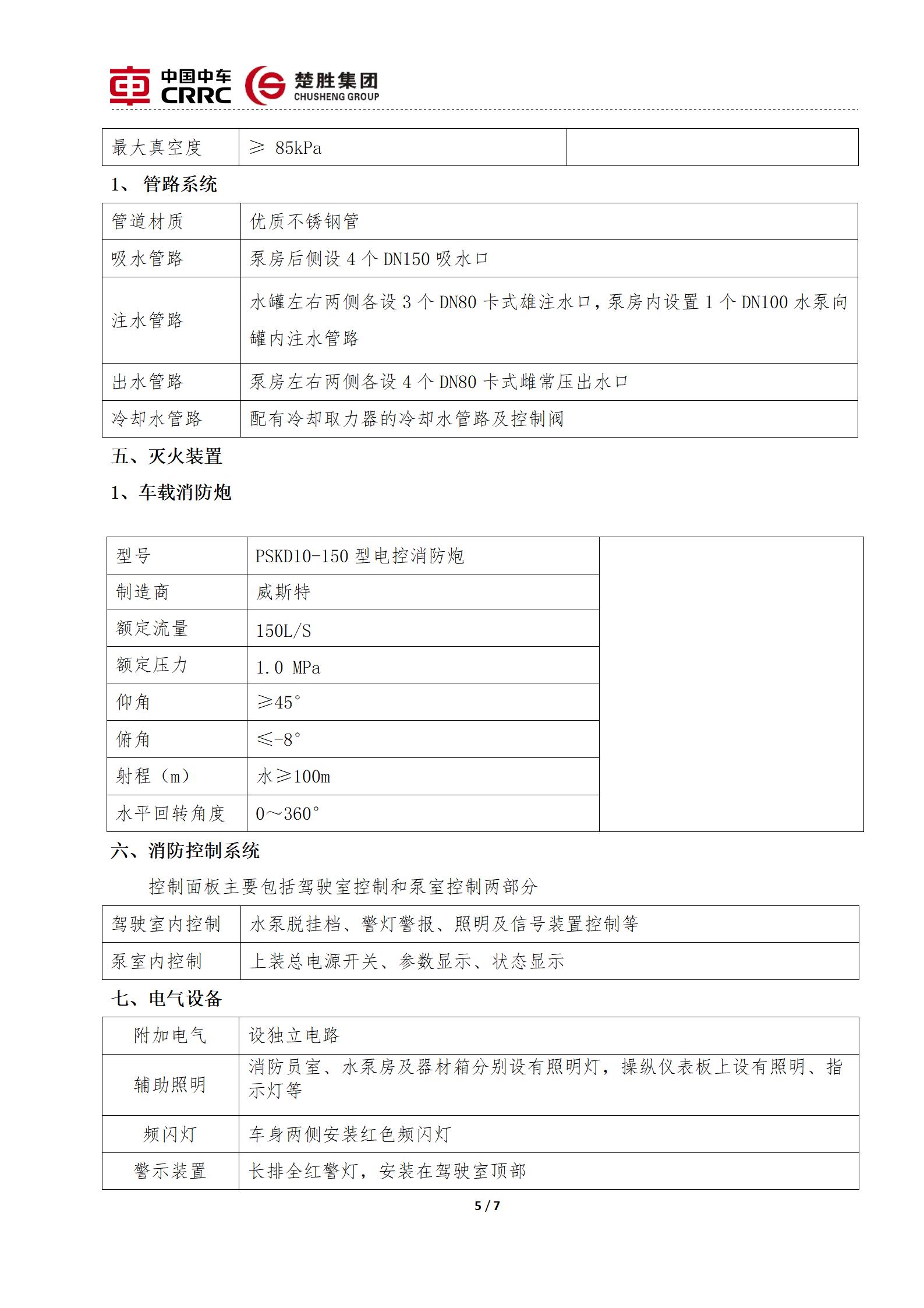 楚勝牌CSC5370GXFSG180/Z6型水罐消防車